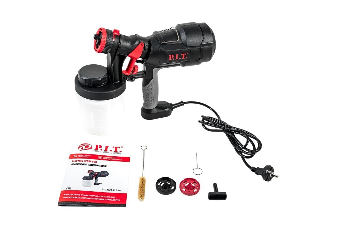 Комплектация | Краскораспылитель,щётка,сопло-2шт., сердечник клапана,ключ,вискозиметр,скрепка,инструкция |