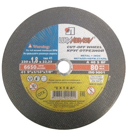 Тип | Диск отрезной по металлу |