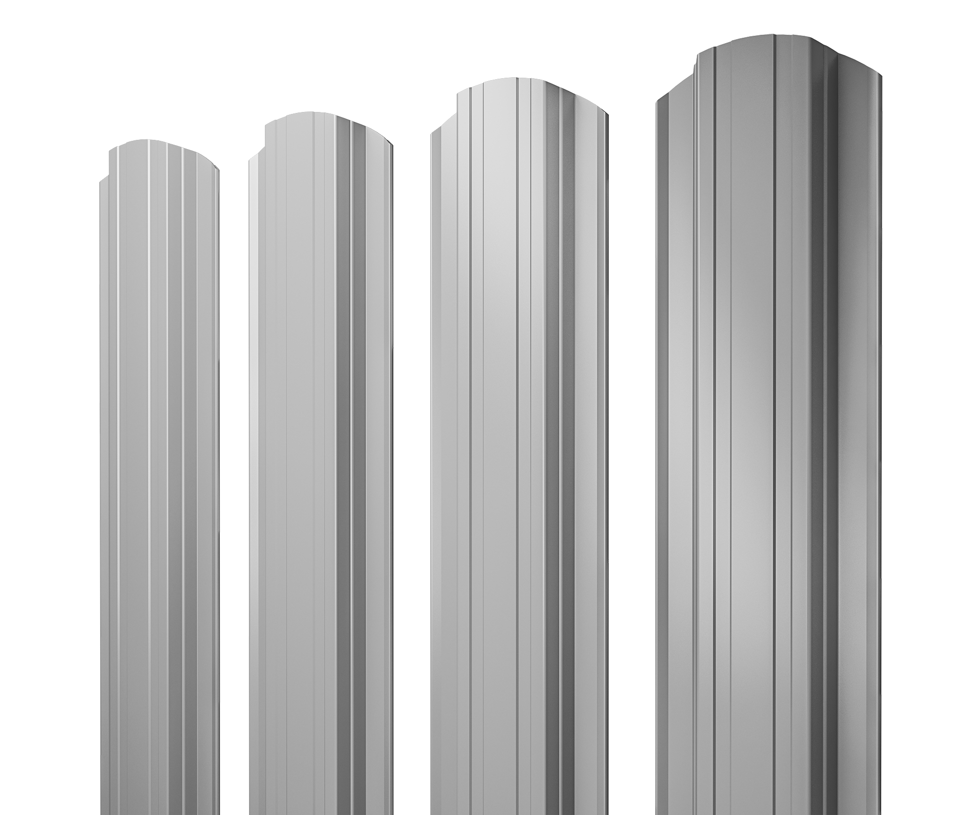 Металлический штакетник с завальцованными краями. Панели обладают прямоугольной центральной частью и двумя продольными канавками по бокам этой части.
