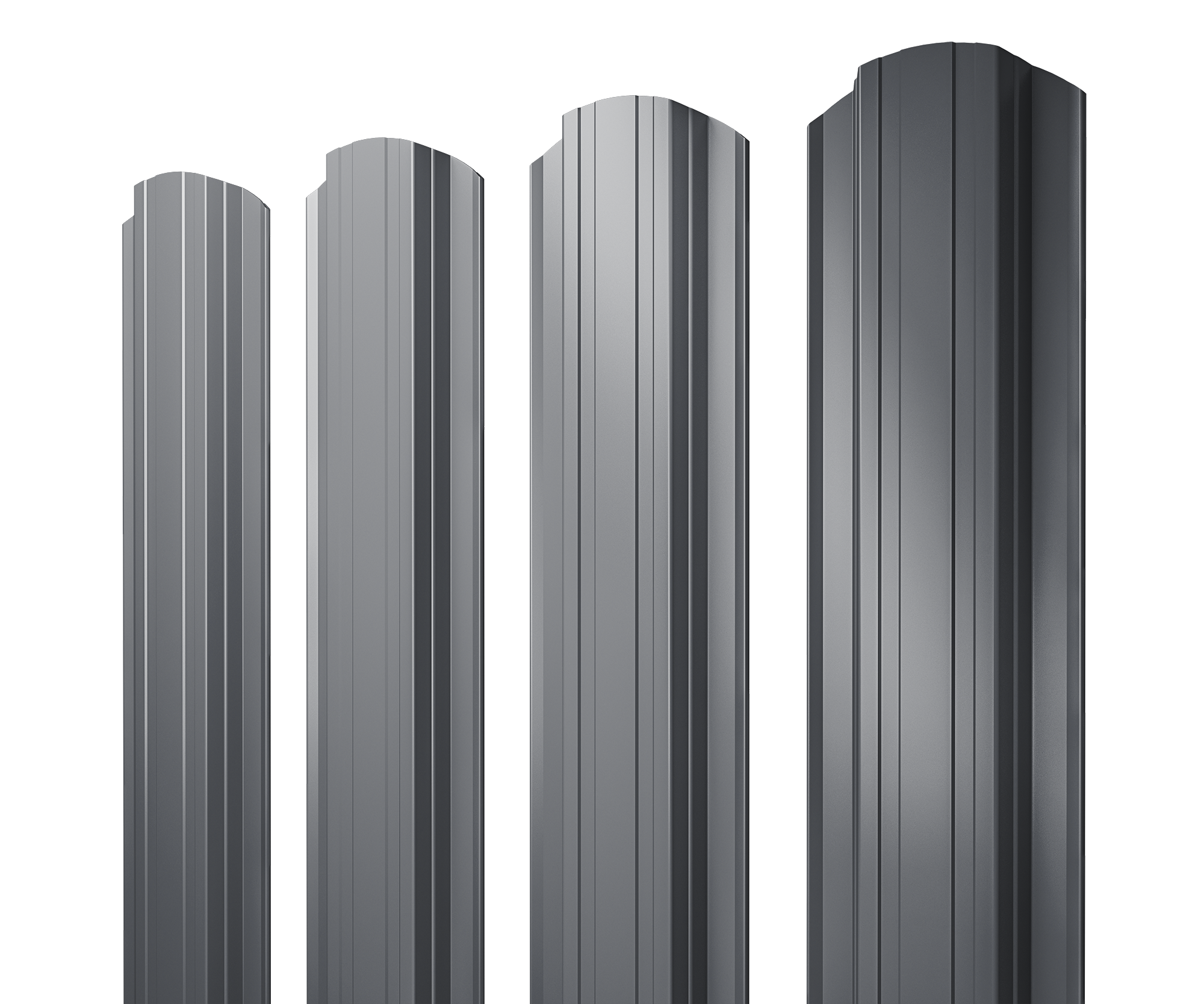 Металлический штакетник с завальцованными краями. Панели обладают прямоугольной центральной частью и двумя продольными канавками по бокам этой части. Также производится с фигурным 3D резом.