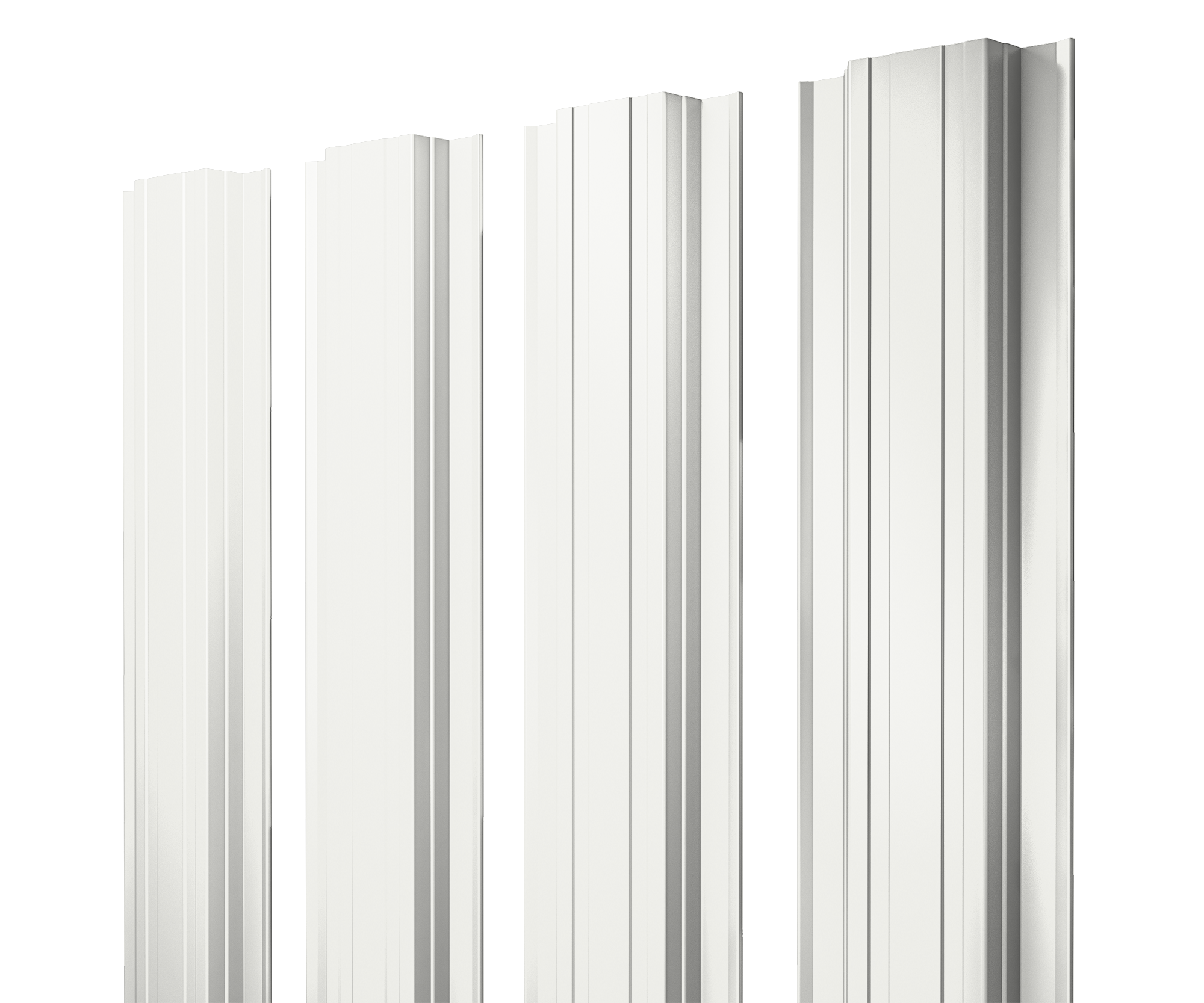 Металлический штакетник с завальцованными краями. Панели обладают прямоугольной центральной частью и двумя продольными канавками по бокам этой части.