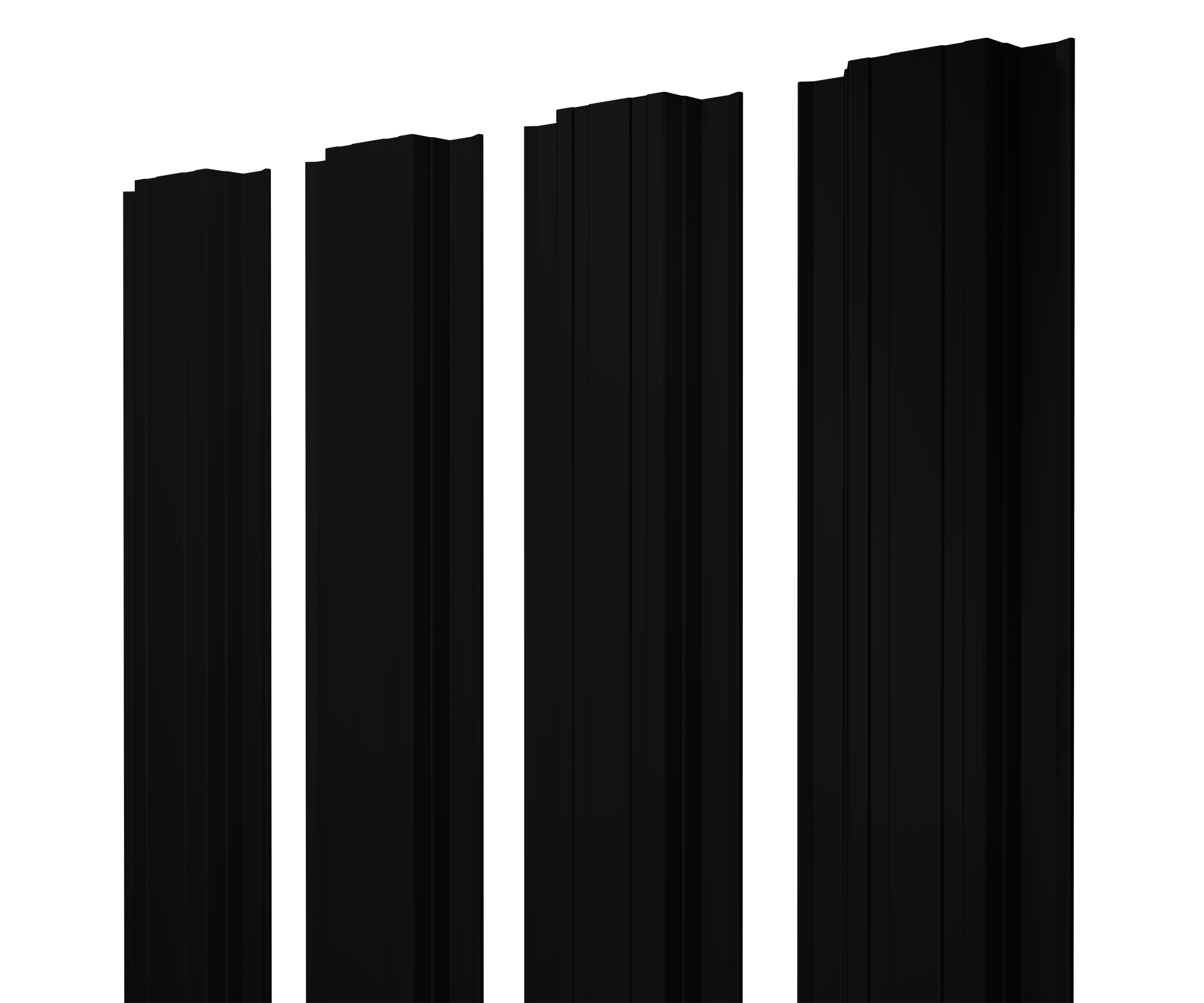 Металлический штакетник с завальцованными краями. Панели обладают прямоугольной центральной частью и двумя продольными канавками по бокам этой части.