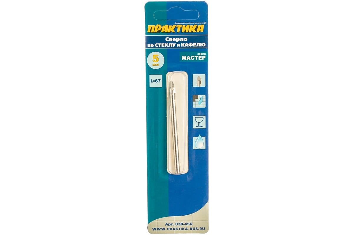 Сверло по стеклу ПРАКТИКА "Мастер" 5 х 67 мм