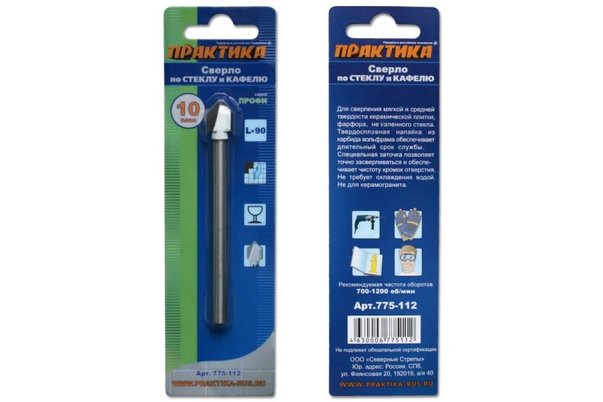 Сверло по стеклу ПРАКТИКА V-тип, серия "Профи". Профессиональное сверло по стеклу и керамике не требующее охлаждения при сверлении. Специальная заточка сверла позволяет точно центрировать сверло и обеспечивает чистоту кромок отверстия. Особая карбид-вольфрамовая напайка обеспечивает длительный срок службы. Рекомендуемая частота оборотов 400-1000 об/мин в зависимости от диаметра. Работать в неударном режиме. Не для керамогранита.