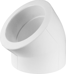Полипропиленовый фитинг. Используется для поворота трубопровода на 45°. Производится методом литья под давлением.